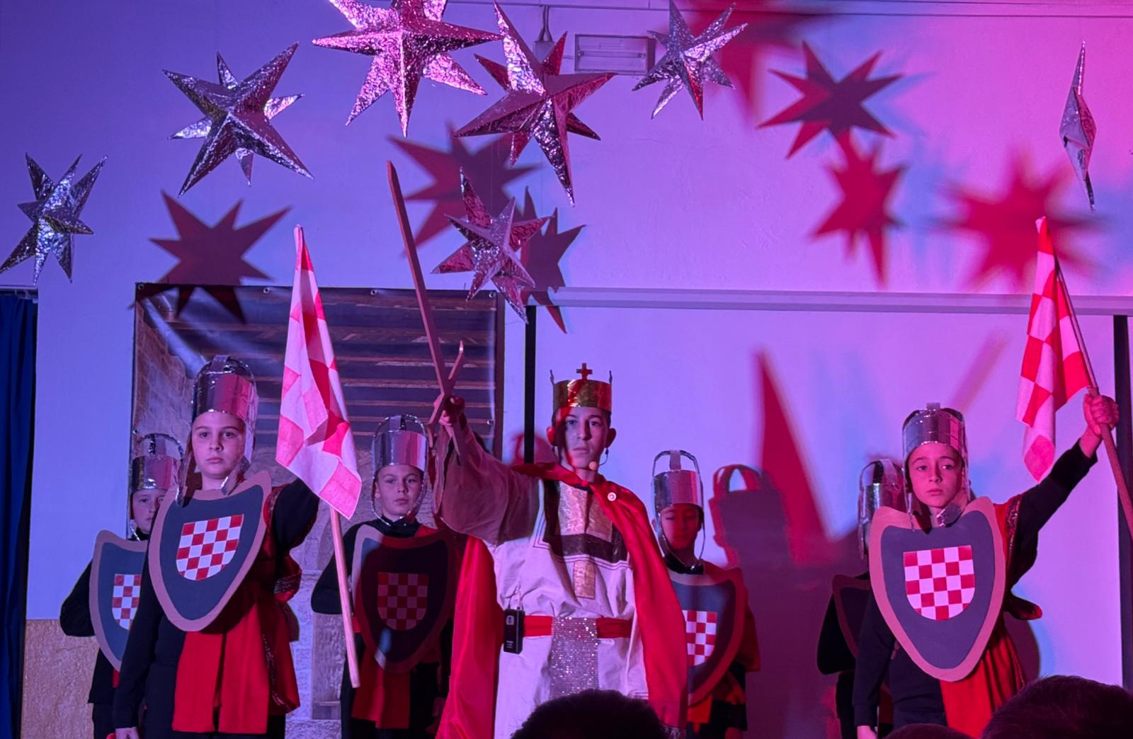 Kulturi program “Krunidba kralja Tomislava” osmislila je prof. Sanja Bago, a izvela ga je dramska skupina škole.