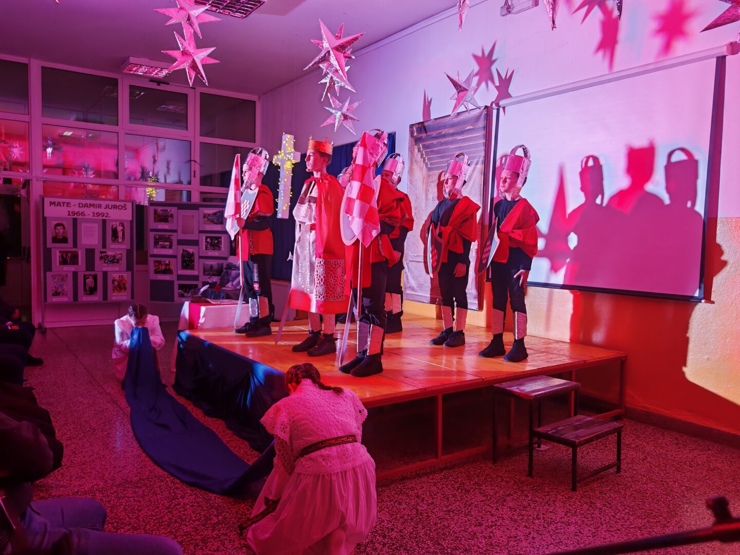 Program je obogatio školski zbor pod vodstvom Sande Medić Grančić, a okupljenima su se obratili ravnatelj škole Marko Mendeš i gradonačelnik Luka Kolovrat pohvalivši trud učenika i mentora te istaknuvši značaj ovakvih projekata za očuvanje kulturnog i nacionalnog identiteta i njegovanje kreativnog izraza mladih.