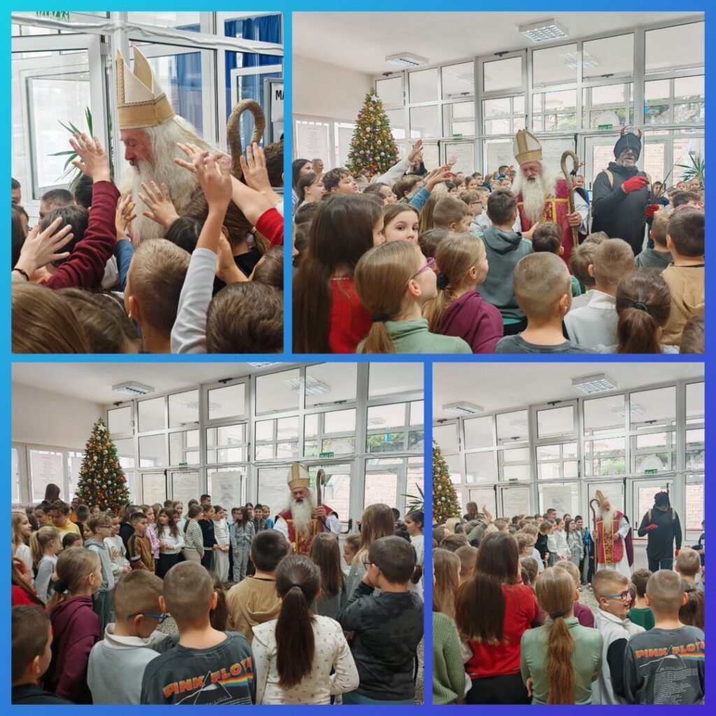 Sveti Nikola, zaštitnik djece, siromašnih ljudi i putnika, tradicionalno je posjetio našu matičnu i područne škole i razveselio učenike razredne nastave. Tako je i ove godine, uoči blagdana, došao u posjetu u jutarnjim satima u pratnji Krampusa. Svetom Nikoli bilo je drago čuti njihova obećanja kako će i dalje biti dobri, vrijedno učiti, pisati domaće zadaće i slušati svoje roditelje i učitelje. I ove godine, kako bi svako dijete dobilo poklon, sv. Nikoli pomogao je Grad Imotski.