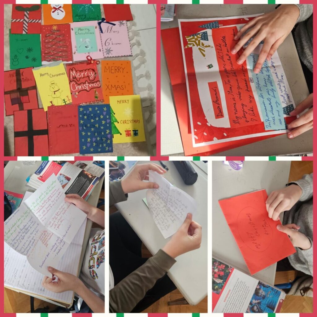 Naši su učenici s puno entuzijazma napisali i ukrasili božićna pisma koja su zatim poslana poštom učenicima u partnerskim školama u Rumunjskoj i Grčkoj. U pismima su se predstavili, opisali svoje božićne običaje te poželjeli sretan Božić i uspješnu novu godinu svojim novim međunarodnim prijateljima.