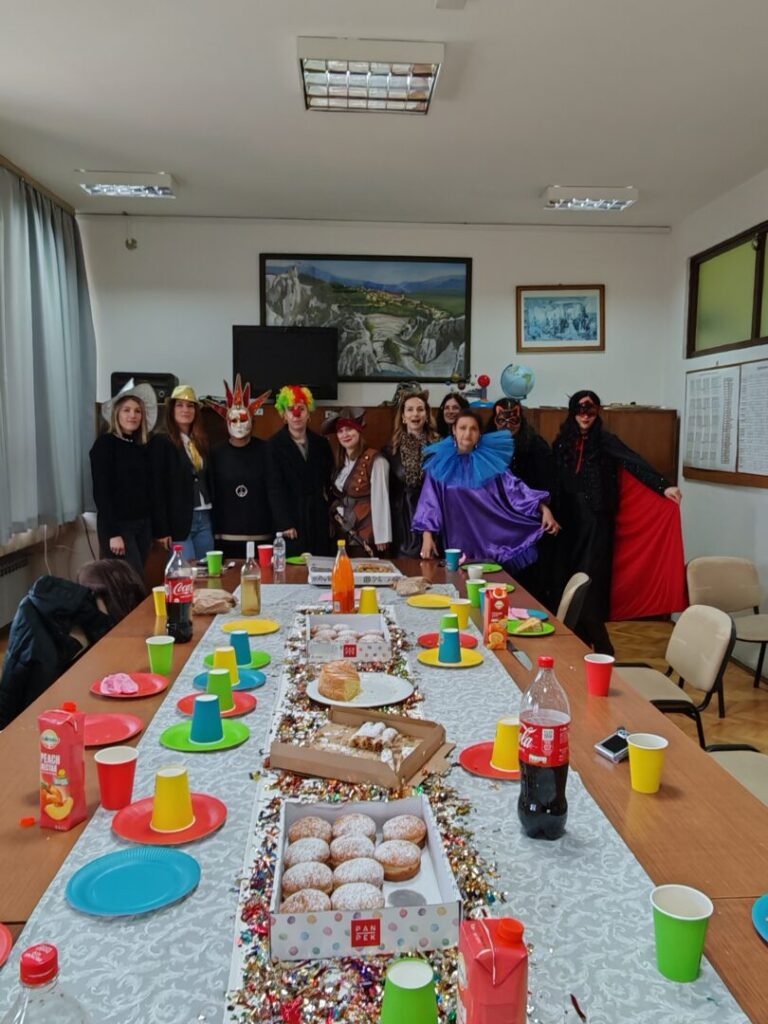 Već prema tradiciji, učenici i djelatnici naše škole obilježili su pokladni utorak u smijehu, šarenilu boja, pjesmi i veselju. U predvorju škole organiziran je mali ples pod maskama za učenike razredne nastave, a veselo je bilo i u školskoj zbornici. Svim maškarama, nastavnicima i svima koji su sudjelovali zahvaljujemo na trudu i kreativnosti te što na taj način pomažu da se održi duga tradicija maškaravanja u našem gradu. Preostaje nam samo da sljedeće godine budemo još bolji, veseliji i kreativniji!