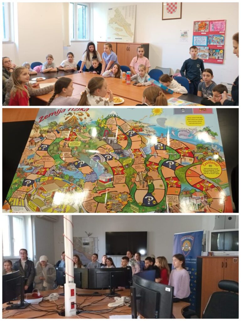 Učenici su imali priliku odigrati zabavno – edukativnu igricu ,,Zemlja rizika“ koja je nastala u suradnji s UNICEF– om. Cilj igre je na zanimljiv način djeci približiti i objasniti što oni kao dio zajednice mogu učiniti kako bi bili sigurniji u slučaju potresa, poplave i drugih nepogoda te potaknuti razgovor o smanjenju rizika od katastrofa u školama. Po završetku edukacije djelatnici su poklonili nekoliko edukativnih igrica za našu školu.